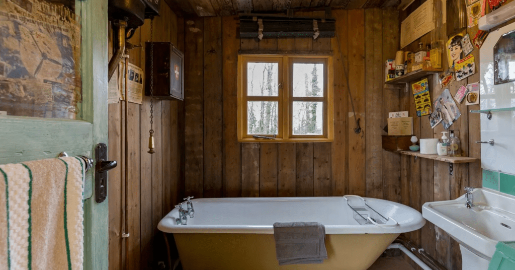 - A claw-foot roll-top bath, overhead cistern toilet, and a wonderful record player with vintage LPs for atmospheric evenings.
