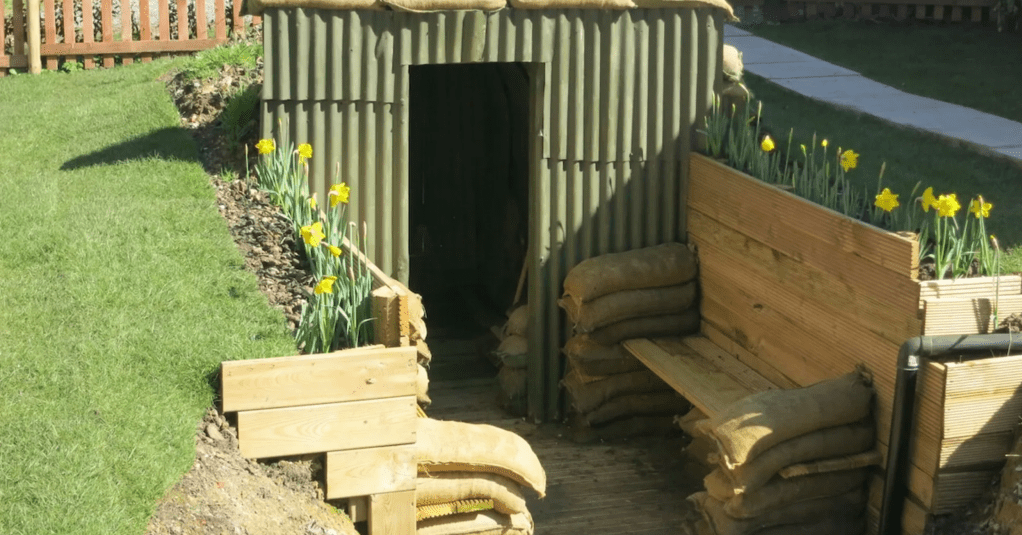 - An Anderson shelter—originally a WWII bomb shelter—now a children’s den and barbecue area